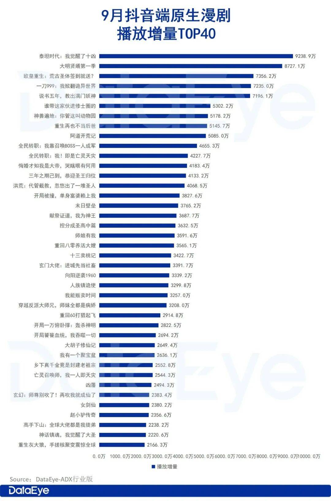 小星动漫放映室播出的玄幻仙侠穿越题材的新剧《泰坦时代:我觉醒了十凶》,9月13日上线,以9238.9万播放增量登顶榜首;