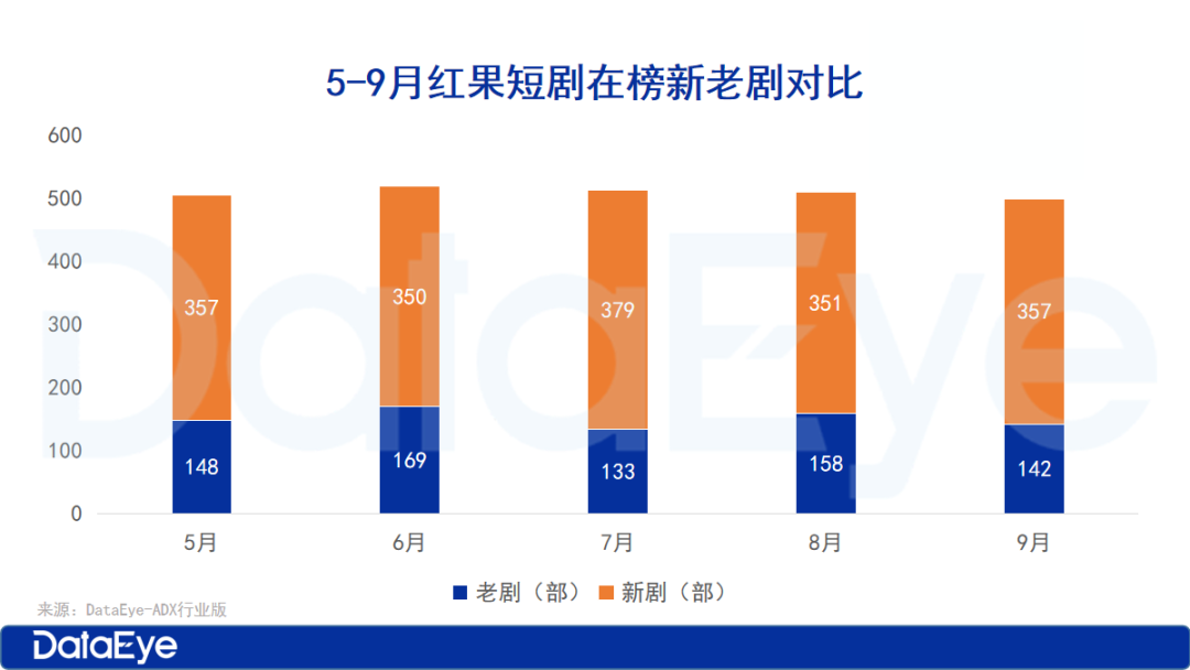 9月,登上过DataEye红果日榜的微短剧数量共499部,其中9月新上线的微短剧占357部,新剧占比达71.54%。在总数方面,变化不大,但在新剧方面较8月,新剧数量有所增加。
