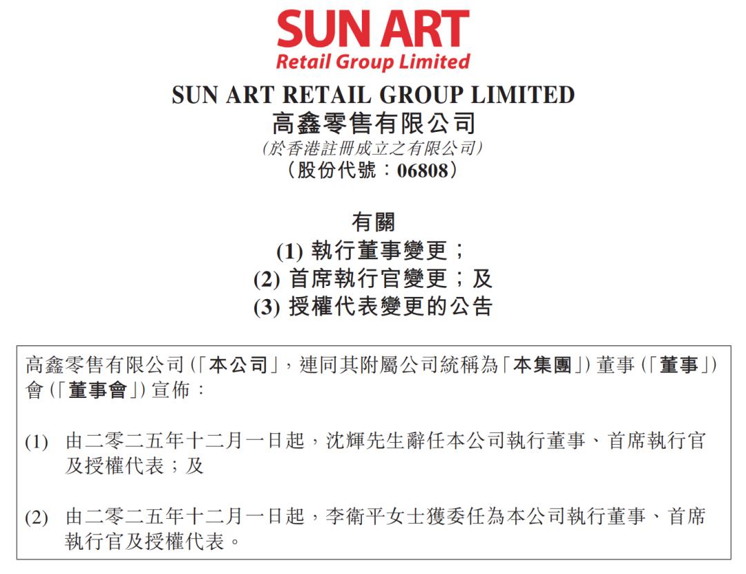 11月30日晚间,高鑫零售(大润发母公司)宣布,由李卫平出任公司执行董事兼首席执行官,自12月1日起全面接管企业运营。原CEO沈辉因家庭事务原因辞任。