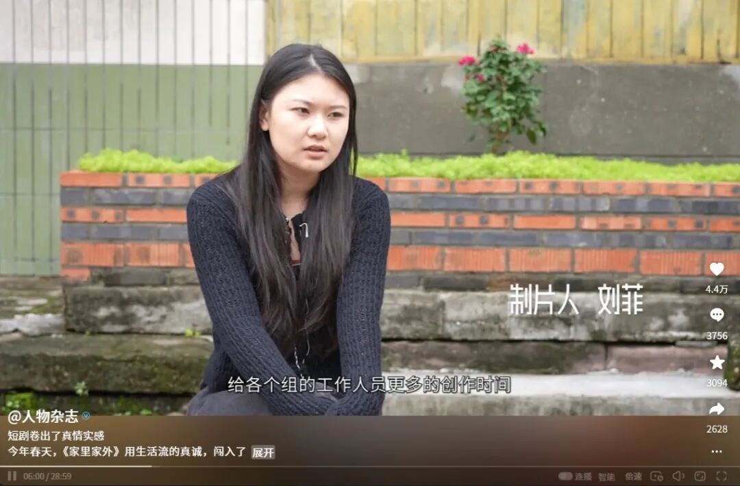 从细节考据到与顶流歌手合作,每一处都体现了对精品化的追求。甚至在《家里家外2》的纪录片中,更多可以看到的是对短剧人的关怀。剧组会尽量给每一位工作人员预留足够的休息时间和情感酝酿的空间。这样人本位的剧组,也让团队的工作气氛更好,大家齐心协力的努力做出好作品。