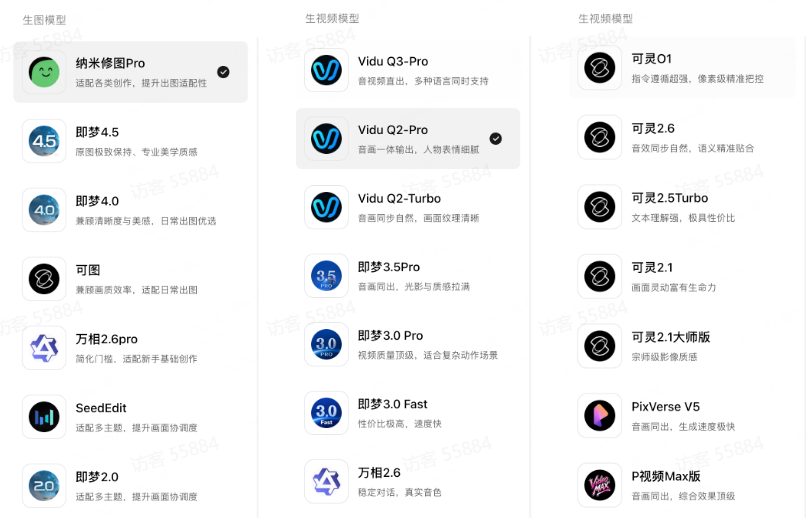 最后,纳米漫剧流水线集世界顶尖模型于一体,从视觉效果实现漫剧质感跃升。纳米漫剧流水线一站式聚合万相2.6、即梦4.5、Vidu Q2、可灵O1等顶尖模型,自动调用最优AI能力。